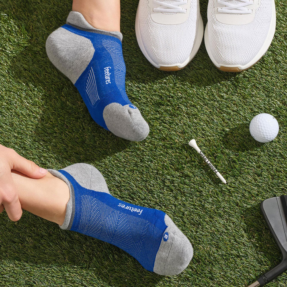 Golf Max Cushion Tab features plush cushioning for soft impact protection during long days on the course. Anatomical design and Targeted Compression create a Custom-Like Fit. The tab height protects your heel, making these golf socks great for walking, swinging, or all-day active movement.